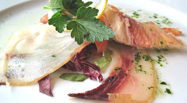 Ingredienti per 4 persone: un luccio di circa 700 g, 50 g di lardo, 10 g di burro, sale e pepe, 1 cipolla, aglio, sedano, sugo di pomodoro, olio extra vergine, farina e 15 g di marsala o un buon bicchierino di vino rosso.