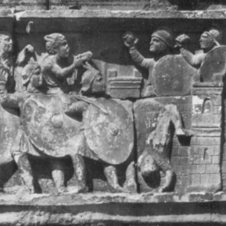 Teodorico segue l’esempio di Odoacre, ma come ritorsione alla persecuzione da parte di Giustino verso gli Ariani a Bisanzio, perseguita i Romani divenuti sospetti uccidendo anche il fedele consigliere Simmaco e facendo arrestare Boezio, suo segretario che poi in prigione scrive il famoso “De Consolatione Philosophiae”.