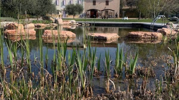Immerso nella verdeggiante campagna di vigneti e alberi da frutto con un piccolo lago naturale.