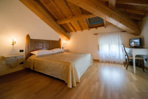 Le 15 stanze si affacciano sul grande vigneto di proprietà, arredate con mobili dal sapore antico, il tutto a creare un’atmosfera calda e rilassante. Il porticato e la vecchia aia si affacciano sul grande giardino e terminano ai bordi della piscina che come uno specchio riflette la cima del Monte Baldo. La Tenuta offre anche la possibilità di effettuare visite guidate alla cantina e degustazioni dei vini di produzione dell’azienda.