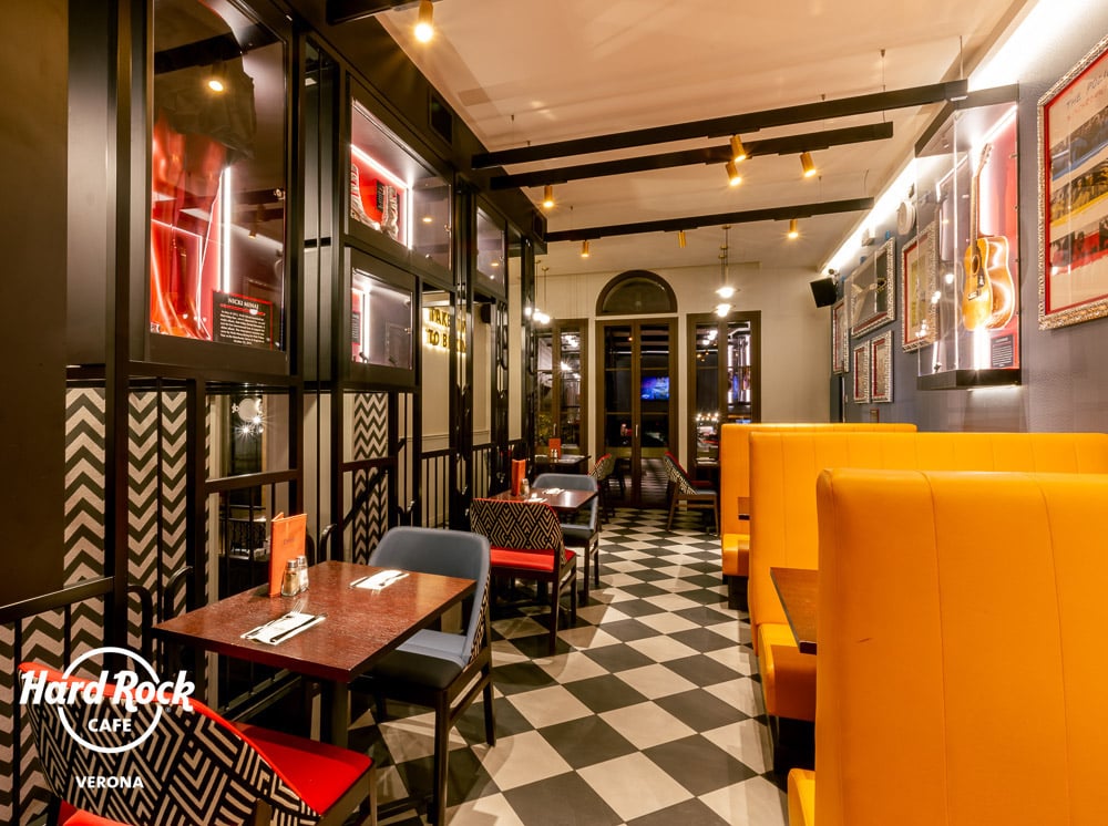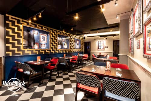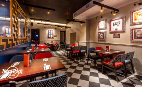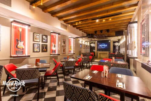Situato nella piazza più famosa di Verona, Hard Rock Cafe Verona ti accoglierà con la sua cucina rinomata, l’atmosfera rock and roll e le viste spettacolari su Piazza Bra. Verona e il marchio Hard Rock Cafe si sono uniti come nella celebre storia d’amore tra Romeo e Giulietta! Quattro sale interne con diversi design, 280 posti a sedere all’esterno e pareti piene di abiti e strumenti musicali appartenuti ai cantanti più famosi.