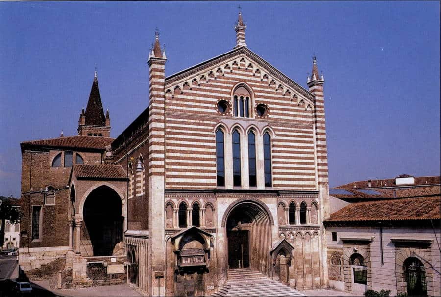 Facile: è la chiesa che sta in fondo al Corso omonimo, quella che fa da fondale alla strada che da Piazza Erbe punta dritta all’Adige, per capirci. Il suo campanile è quello più vicino al fiume e anche quello che meglio si staglia nei panorami di Castel San Pietro. Dentro, non c’è un angolo bianco: pitture, affreschi, monumenti e colonne imponenti ne fanno una delle più belle chiese di Verona. Ed è anche la più grande. Persino più grande del Duomo. Vanta uno dei capolavori assoluti della pittura gotica: l‘affresco di San Giorgio e il drago del Pisanello.