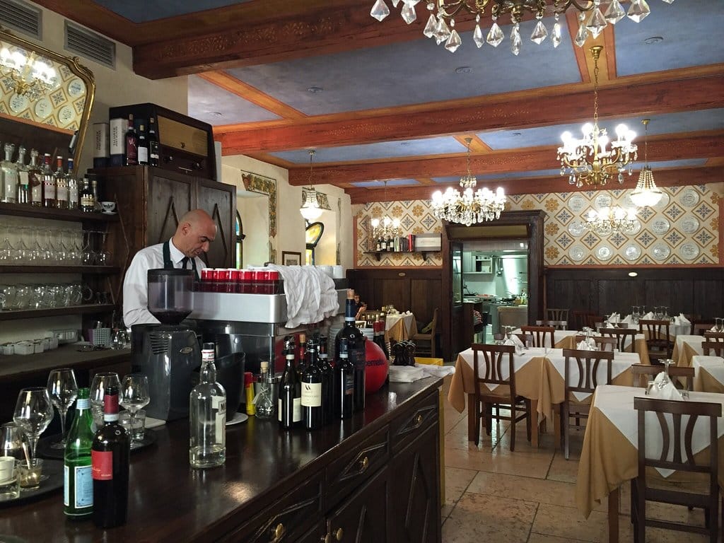 L’arredamento è tipico delle osterie veronesi, con tovaglie a quadrettoni, sedie rifinite in paglia e spaziose credenze. Immancabili le bottiglie delle cantine veronesi sparse qua e la per il locale.