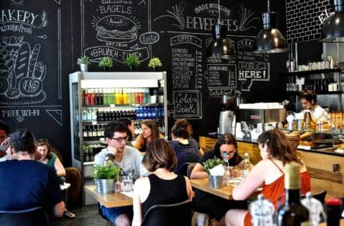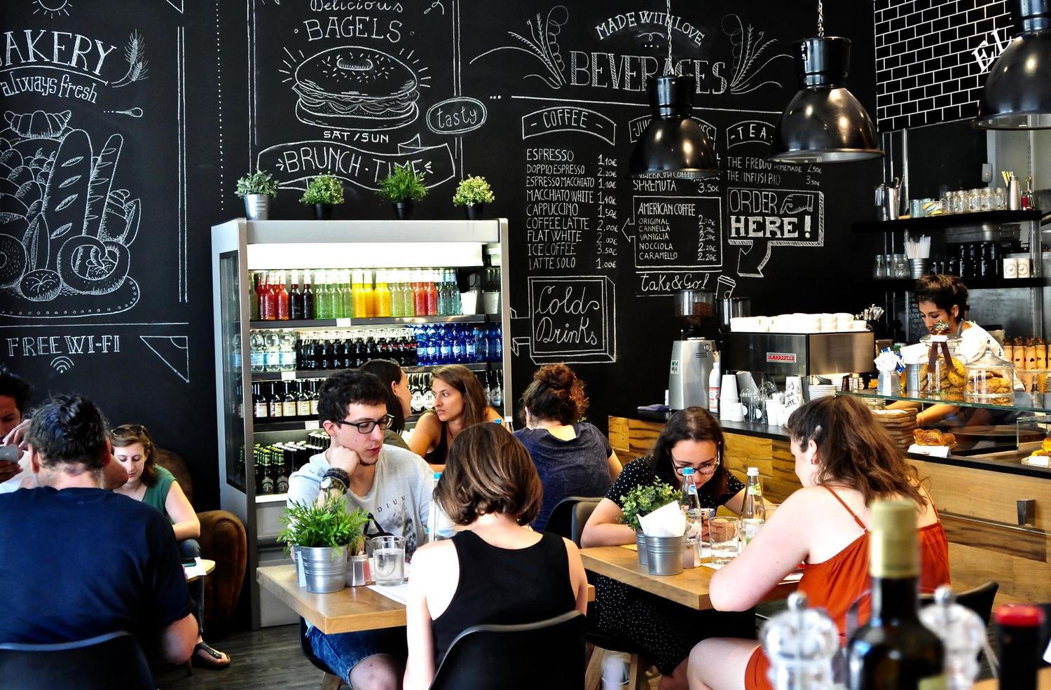Bagel e pancake in un ristobar che sembra arrivato direttamente da una qualsiasi strada di Manhattan con pareti a lavagna, che offre colazioni e brunch. Recensione completa del locale qui.