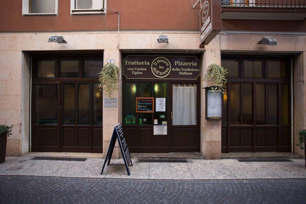 Tra via Mazzini e l’Arena si trova il ristorante pizzeria “Il Bacaro dell’Arena“, che offre le sue specialità regionali a chi vuole gustare i sapori veronesi a un prezzo onesto. La varietà delle pizze non manca. Vini prettamente della zona. Nel periodo estivo plateatico esterno con vista sull’Arena di Verona.