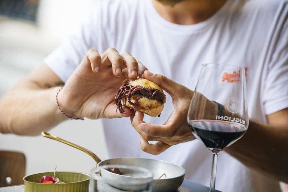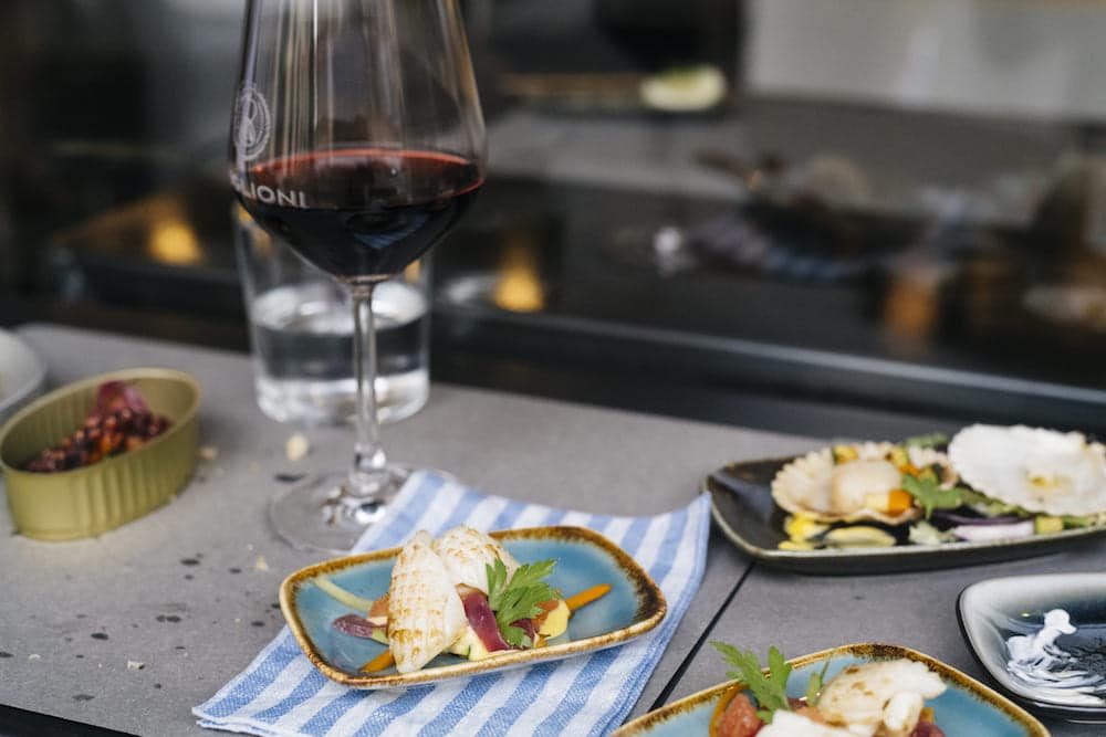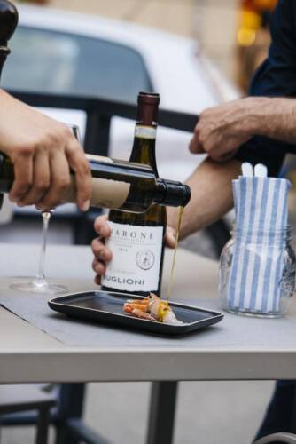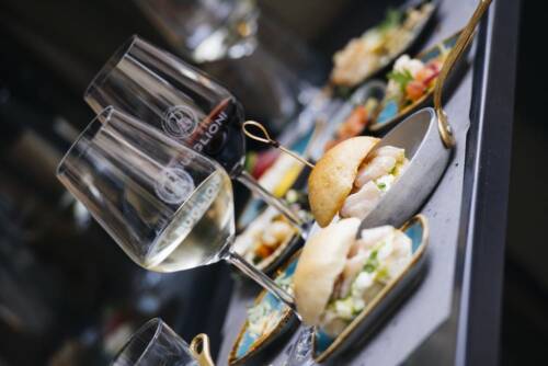 La carta dei vini ospita le etichette Buglioni – rossi, bianchi e bollicine – accanto ad una selezione di Champagne e italianissime proposte quali Franciacorta e Alta Langa. Se volete provare l’insolito, entrate e chiedete La Caramella: scampo crudo e un bicchiere di Amarone della Valpolicella. Tre aggettivi per descriverla? Impensabile, sorprendente, azzeccata.