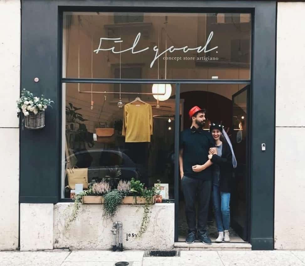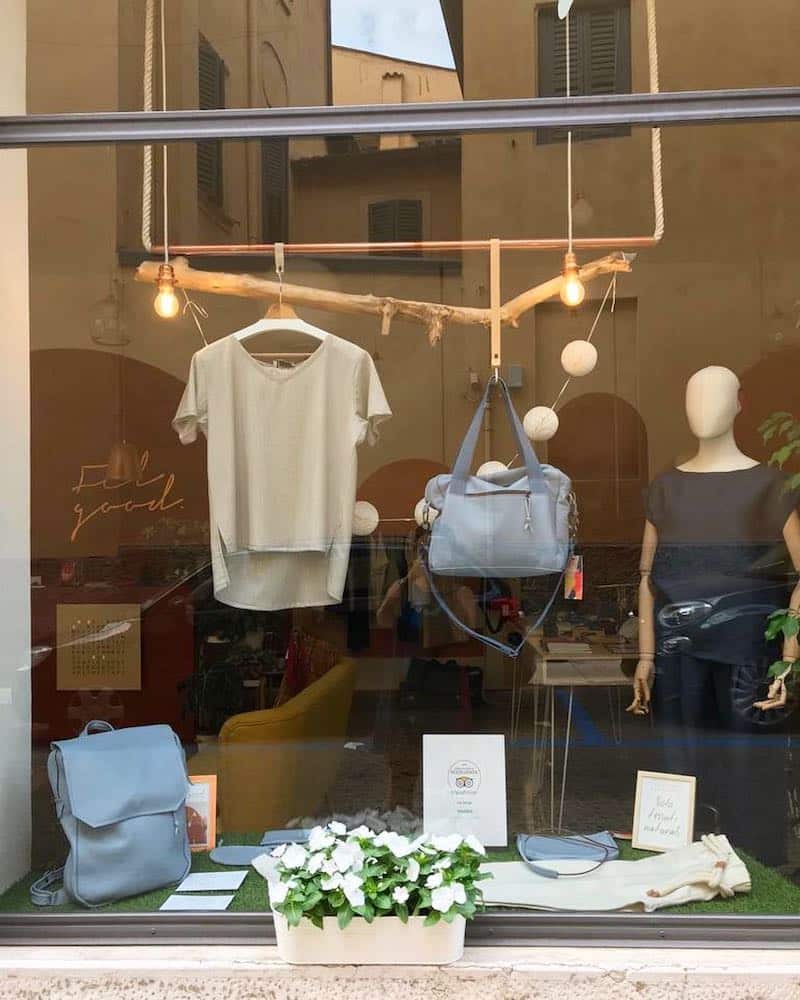 Negozio di abbigliamento che propone abiti in tessuti naturali e dalle linee semplici realizzati a mano a Verona: abiti Filotimo (ne abbiamo parlato qui) e borse in pelle FiluFilu.