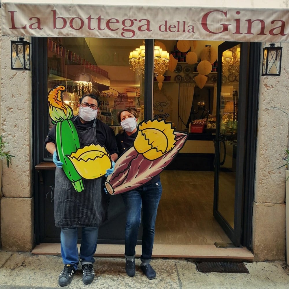 La Bottega della Gina dal 2009 propone una vasta gamma di prodotti di gastronomia dalla pasta fresca ai tortellini, dai salumi ai formaggi. Una porzione di tortellini si può degustare anche passeggiando per le vie della città antica.