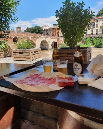 Scegliete formaggi e affettati, vino o birre fresche e godeteveli subito sulla bella terrazza affacciata sul fiume Adige.