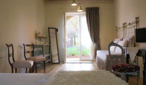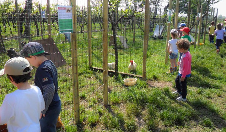 Subito dopo pranzo gli ospiti si possono accomodare all’esterno e guardare i bambini correre tra i giardini dell’agriturismo mentre incantevoli rose rosse e profumatissime ortensie rendono bucolica l’atmosfera.