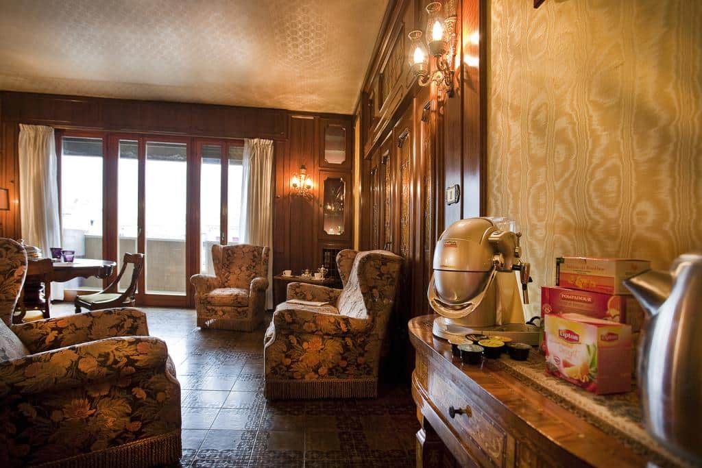 La colazione viene servita ogni mattina in un’elegante sala ristorazione con mobili d’epoca, dove vi aspettano anche un internet point e uno spazio accogliente per rilassarvi con un caffè o un tè durante la giornata.