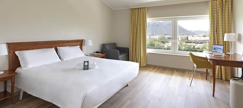 Le 105 camere sono spaziose ed accoglienti. Tutte dotate di aria condizionata, minibar, cassetta di sicurezza, collegamento internet WiFi, pay-Tv e asciugacapelli.