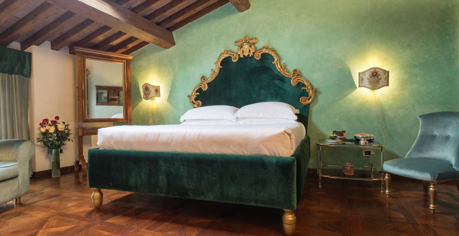 È uno tra i pochissimi hotel al mondo con tutte le testate dei letti antiche, con l’utilizzo di preziosi tessuti in velluto misto seta per ottenere effetti cangianti che si rifanno alla tradizione pittorica di Paolo Veronese e questo conferisce un grandissimo fascino.