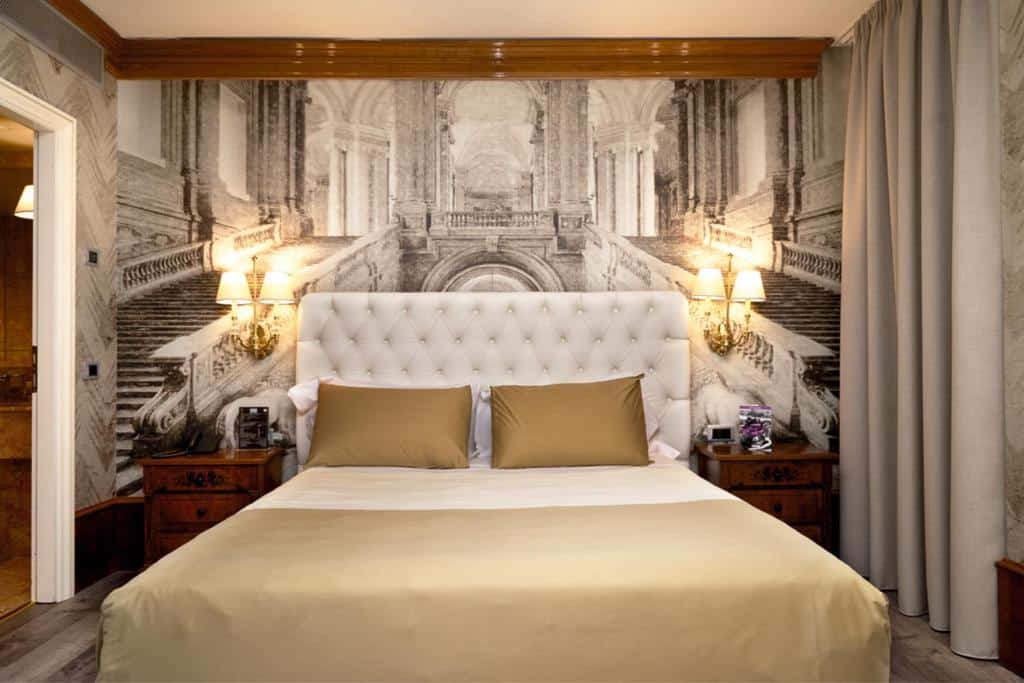 L’Hotel dispone di 190 camere di tipologia Classic, Superior, De Luxe, Suite, Royal Deluxe e Royal Suite con pavimento in moquette e parquet, dotate di climatizzazione autonoma, TV con digitale terrestre e programmazione Sky, minibar, telefono con linea esterna diretta, cassaforte digitale, connessione internet Wi-Fi, asciugacapelli, linea cortesia completa di pantofole e morbida biancheria in bagno.