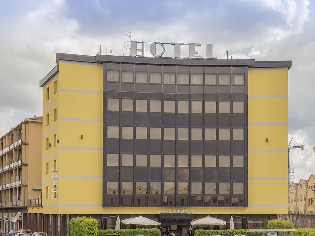 L’Hotel San Pietro è stato interamente ristrutturato nel 2005, secondo le recentissime tendenze del design contemporaneo italiano e le più recenti normative europee in materia di sicurezza. L’Hotel si trova in una posizione strategica per la sua vicinanza alla Fiera, al centro storico, alla stazione ferroviaria e all’uscita autostradale di Verona Sud. L’Arena dista appena 1 Km ed è facilmente raggiungibile a piedi, con l’autobus di linea che si ferma a fianco dell’hotel e, d’estate, con il servizio navetta gratuito offerto dall’Hotel.