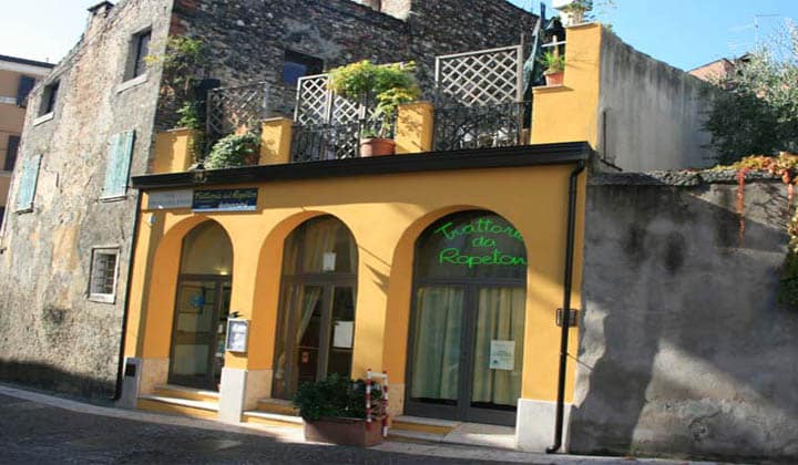 La Trattoria Da Ropeton, situata nei pressi della chiesa di San Giovanni in Valle e a pochi passi dal Teatro Romano, è un locale rustico, familiare e molto accogliente, dotato di una piacevole terrazza al piano superiore in cui mangiare d’estate all’ombra di un bel pergolato.